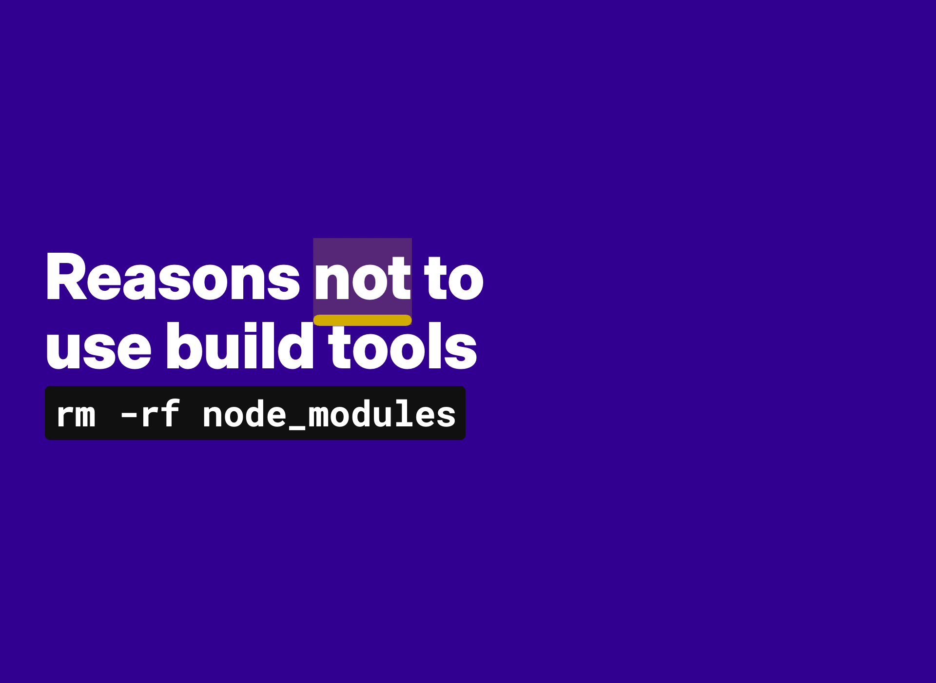 It sounds like I’m doing a marketing pitch for build tools. I’m just trying to be fair okay? Don’t say I didn’t give build tools a fair shake, okay? But they add so much complexity.