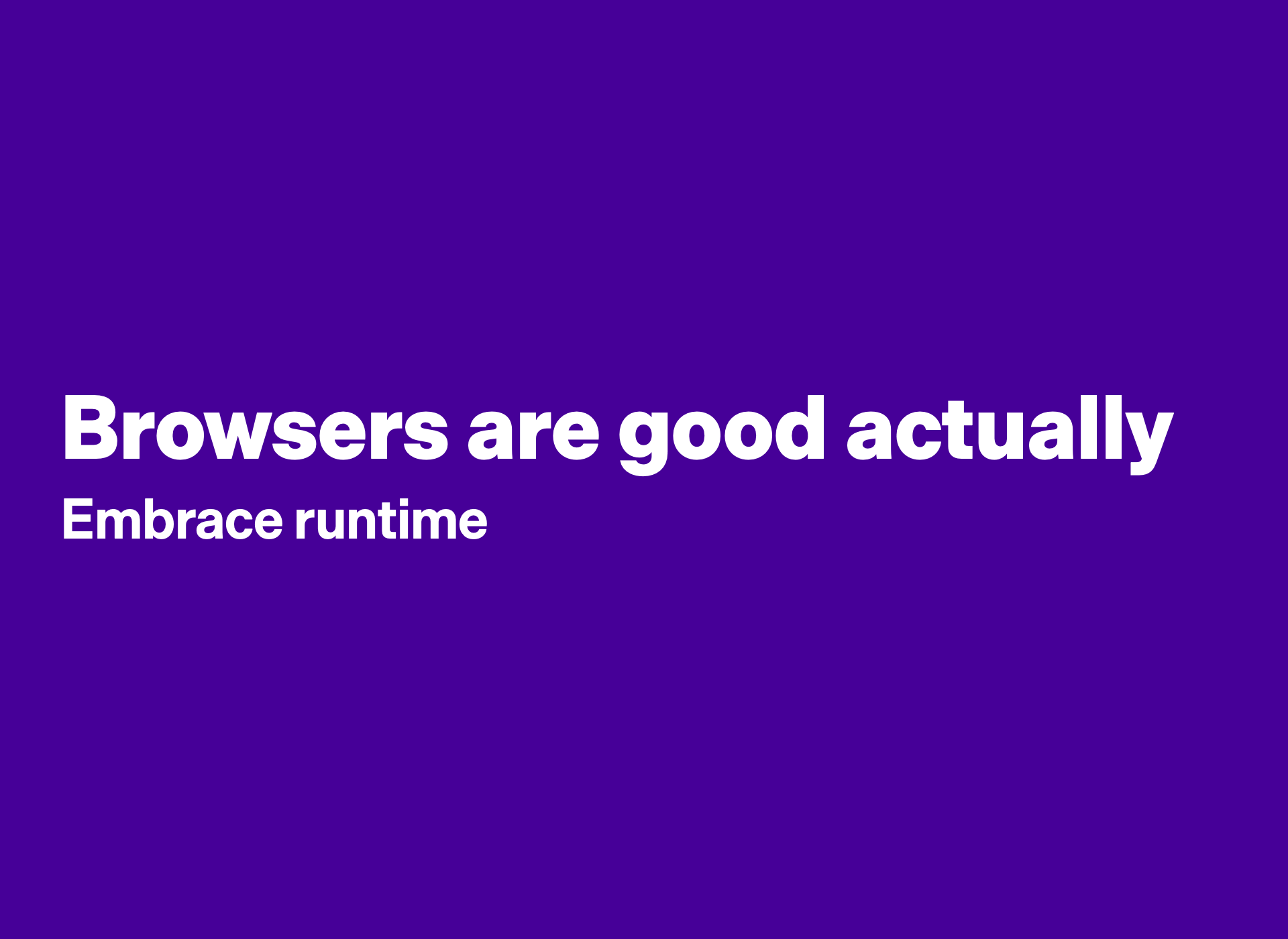 So no more compiling. Let’s write the code the browser is going to run. Let’s embrace runtime. We’re starting our tour off with styling.
