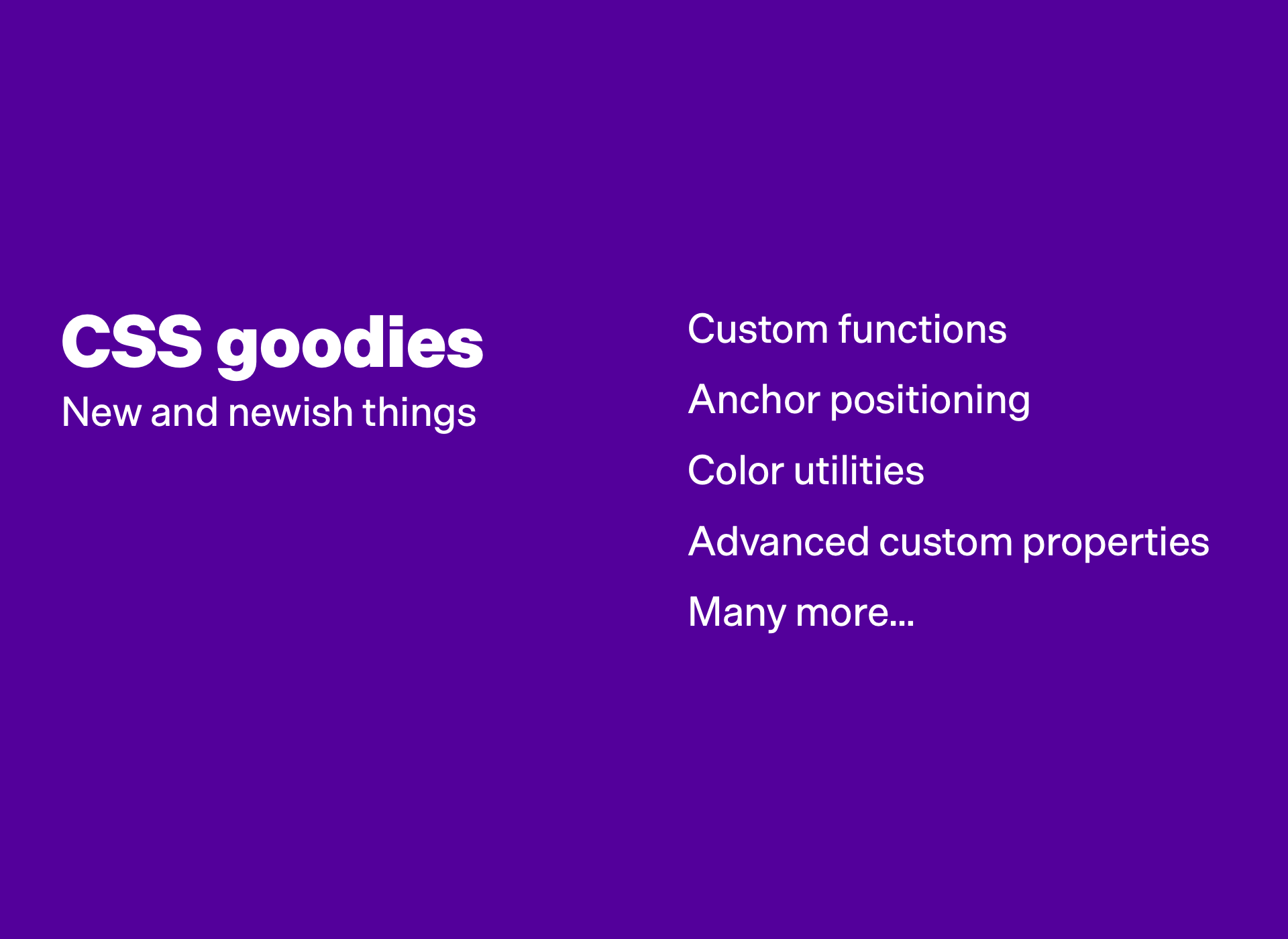 And there are all sorts of goodies coming in CSS. I’m serious, I need to take a course in CSS again. If you’re like me and it’s been a minute since you brushed up on your CSS knowledge, then you’re probably missing out on a ton of really cool stuff. But yes, some new and newish things are: