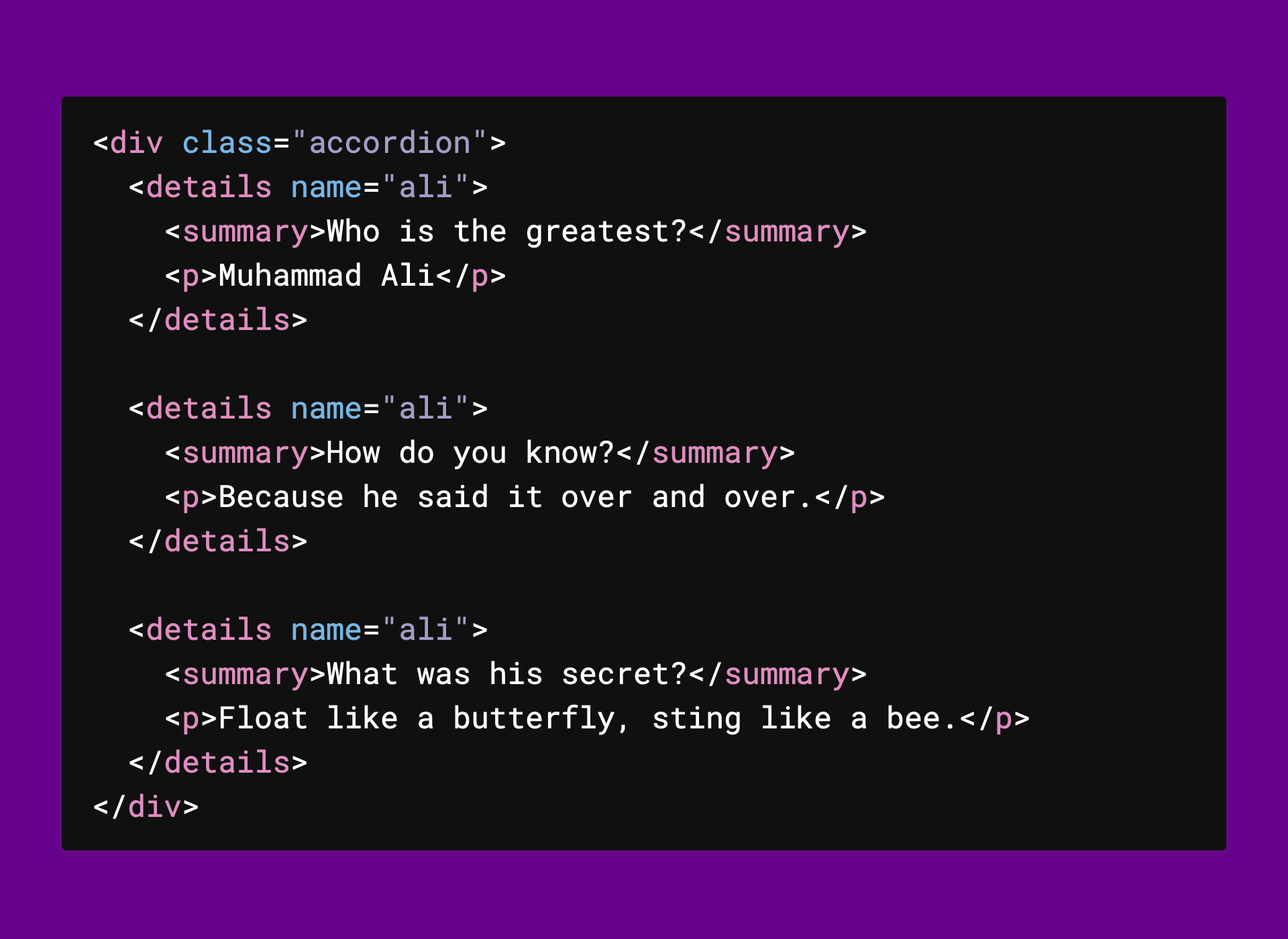 We can take this a bit further and combine multiple <details>