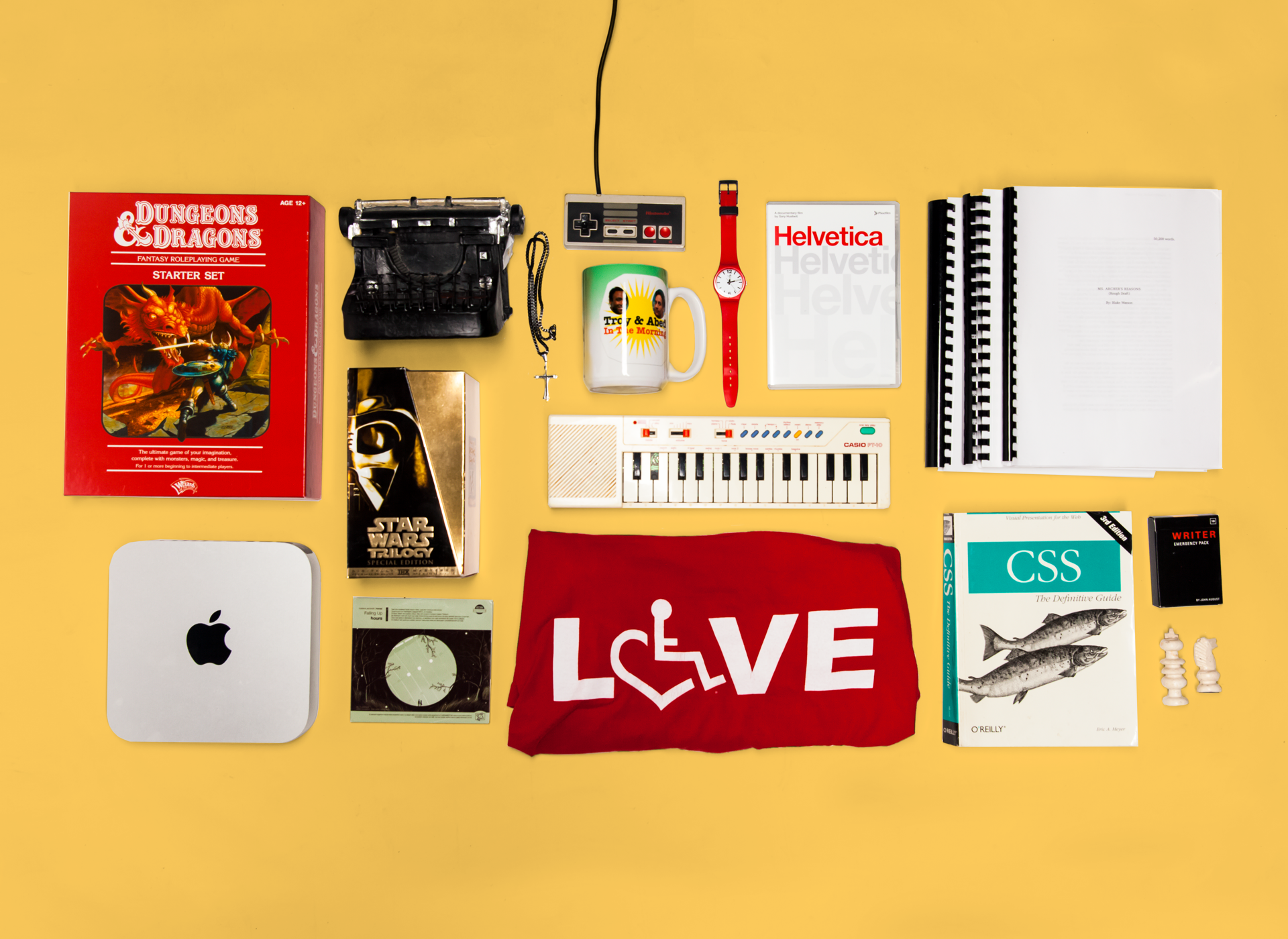 Aside from work. I’m a side-project enthusiast, which is kind of what my last Magnolia talk was about. I have a disability called spinal muscular atrophy so I use a power wheelchair and a lot of assistive tech. I enjoy playing Dungeons & Dragons. I enjoy blogging and creative writing. And I have a bit of a font-hoarding problem.