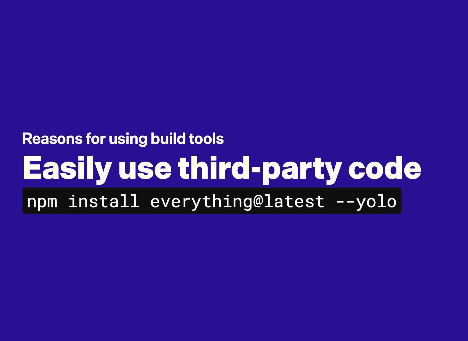 Nope. We’re having to put too much trust into too many authors and packages and infrastructure. And with every package we install, our attack surface becomes a larger.